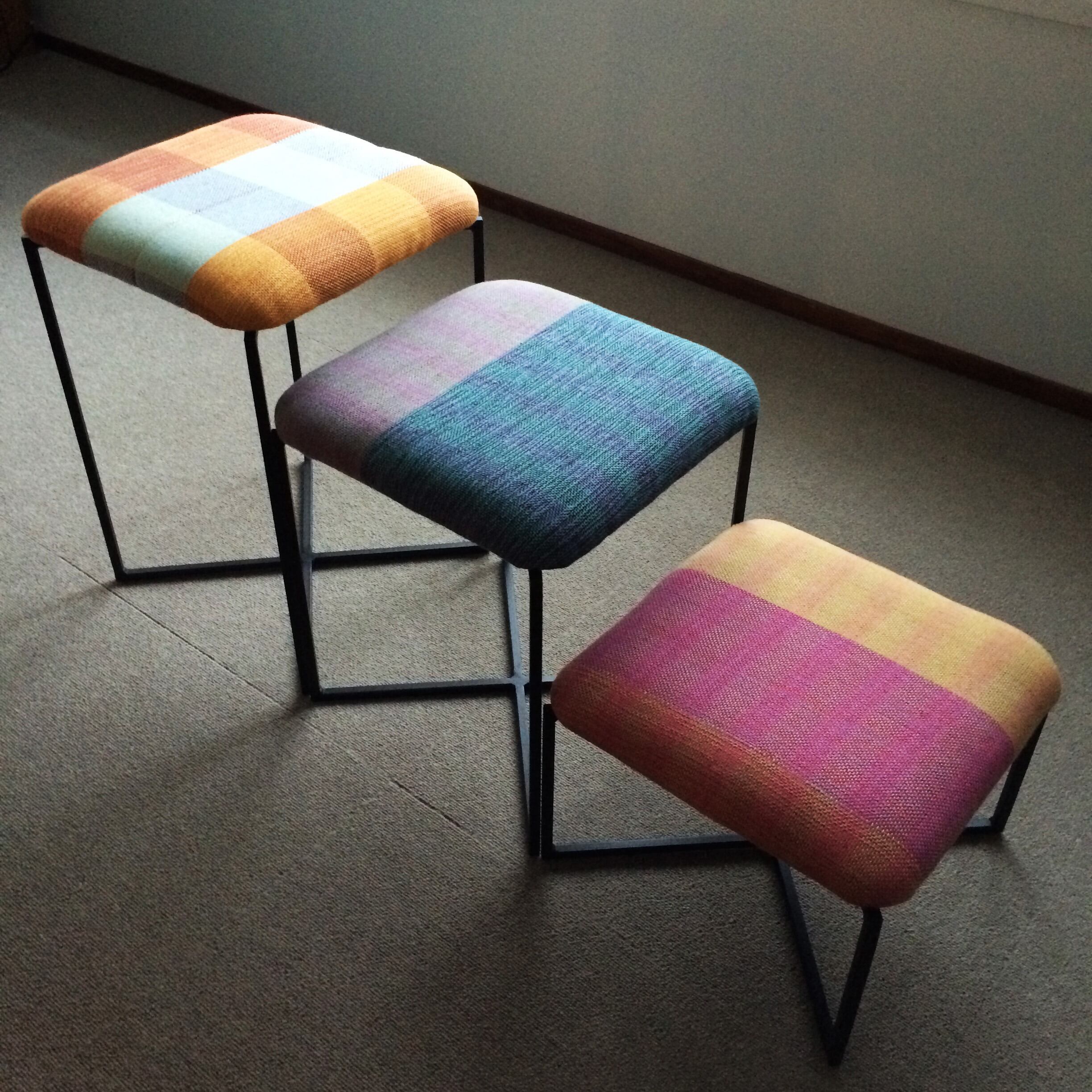 ダウン症の織物作家・佑太が感性で織り上げる“佑太織”を張り地にしたスツール。